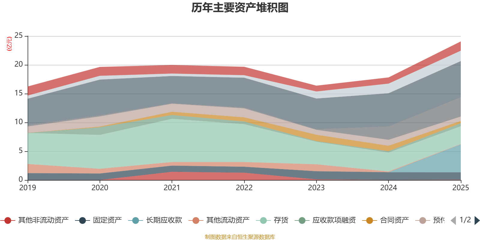 资产重大变化方面,截至2025年末,公司长期应收款占公司总资产的20.18%,上年末为0;应收票据及应收账款较上年末增加8.82%,占公司总资产比重下降6.3个百分点;存货较上年末减少5.72%,占公司总资产比重下降5.6个百分点;合同资产较上年末减少57.44%,占公司总资产比重下降3.63个百分点。