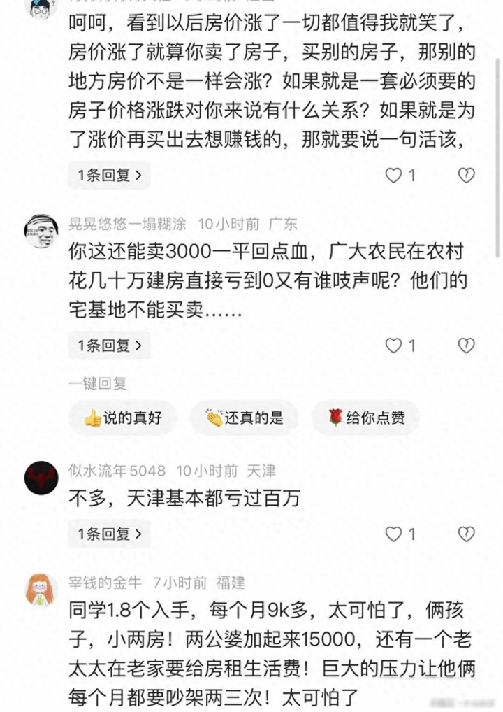 还有很多人处境更糟,农村家庭花四五十万盖了新房,宅基地没法卖,房子盖好只能空置,资产等于没有,城市夹心层月收入一万五,月供九千,还要赡养老人,夫妻因为钱的事经常吵架,单身女性面临婚恋市场要求有房,房贷压力让她不敢跳槽、不敢进修,越努力越难结婚,越难结婚越焦虑,结果又被指责自作自受。